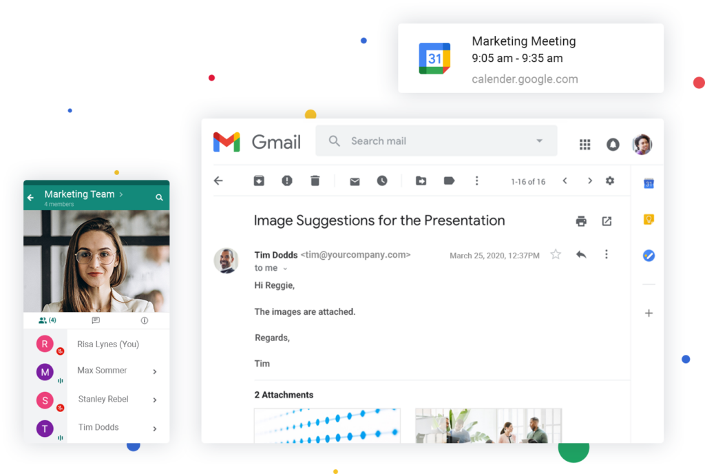 Stay connected with your colleagues via HD video calls and instant messages using Google Meet and Google Chat.